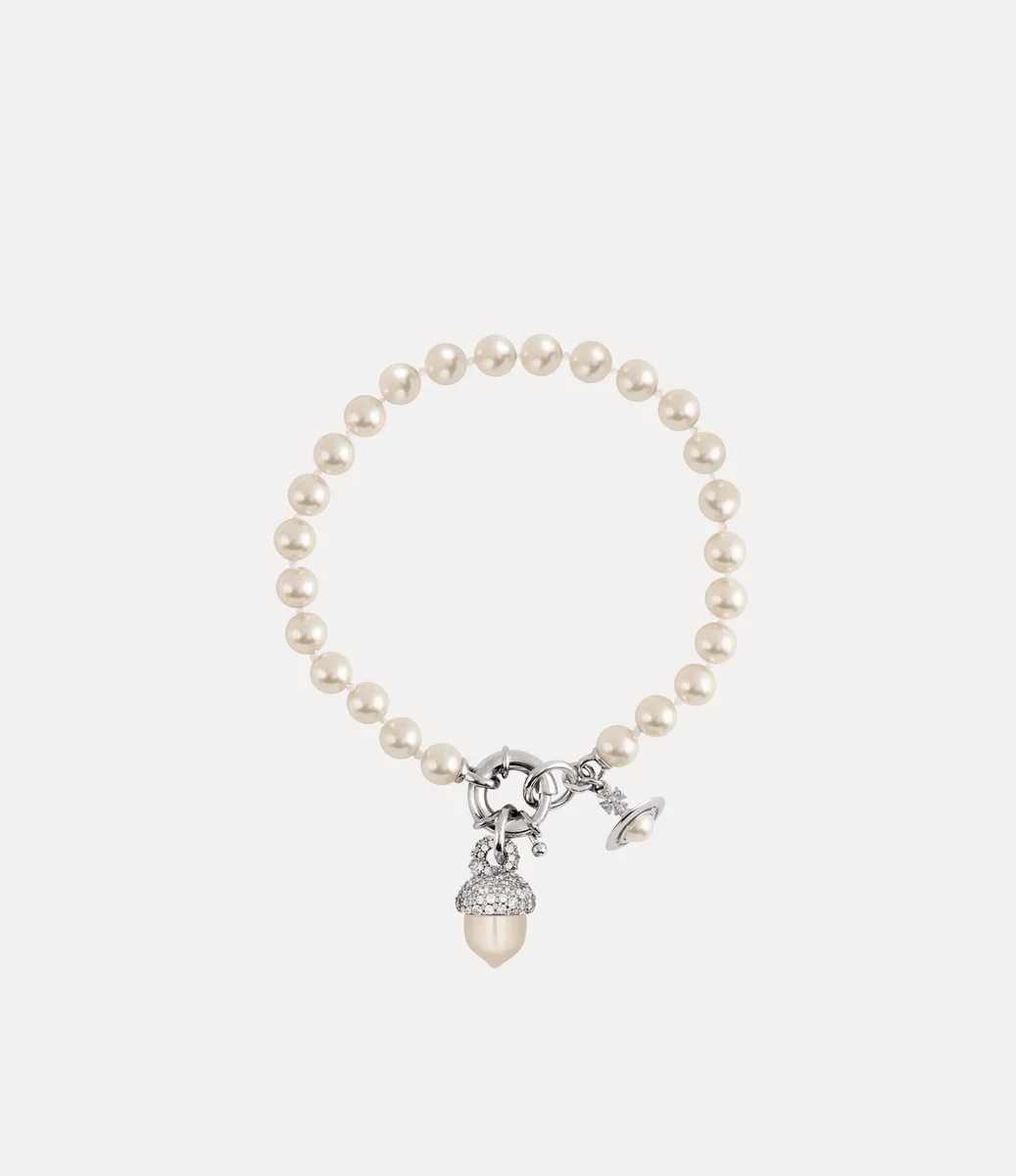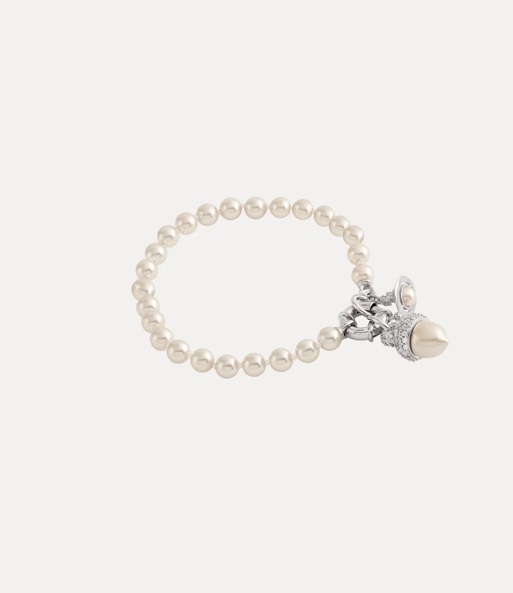 La pulsera Lucille Pearl está compuesta por una hilera de brillantes perlas de cristal Swarovski que evocan una sensación de grandeza y lujo. En el centro, una bellota de resina adornada con cristales pavé, que simboliza la fuerza y los nuevos comienzos, se completa con un delicado charm en forma de esfera con perlas colgante.