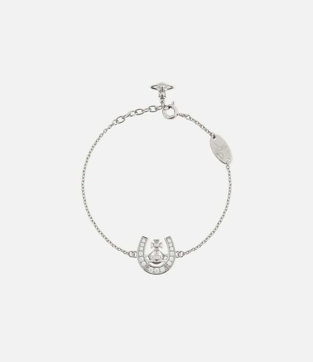La pulsera Mare de Vivienne Westwood, fabricada en plata reciclada, está incrustada con brillantes cristales tonales y presenta un motivo central en forma de herradura.