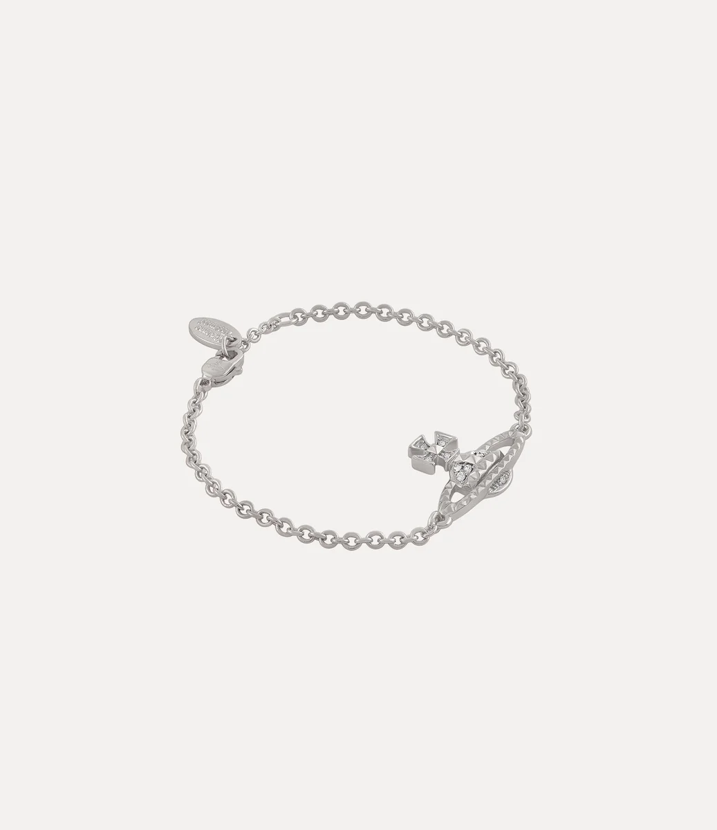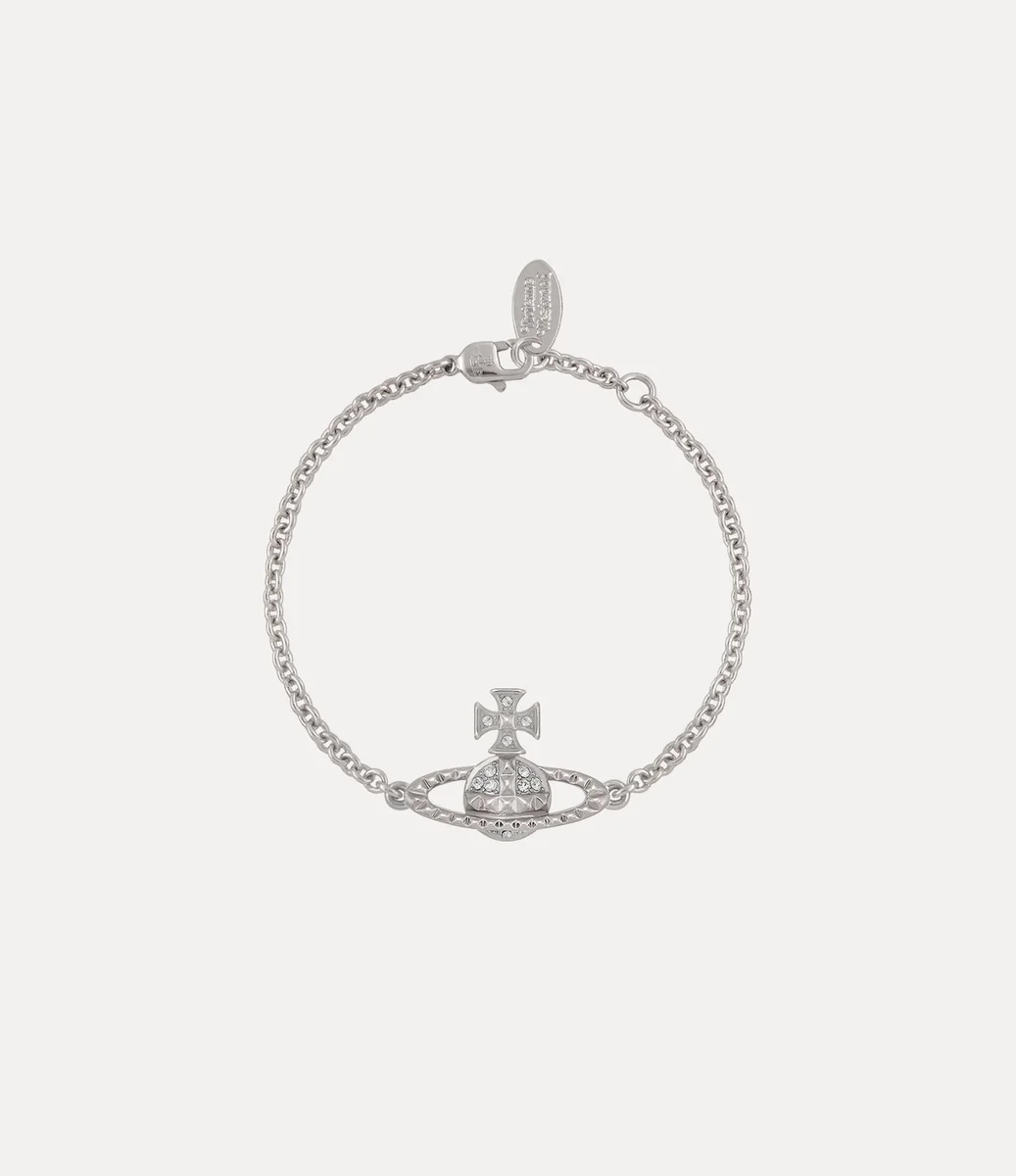 Nuestra pulsera Mayfair Bas Relief ha sido rediseñada esta temporada, con un baño plateado y adornos de cristal blanco. La pieza, que lleva el nombre del barrio londinense de Mayfair, tan querido por Vivienne, presenta detalles de tachuelas piramidales y nuestro motivo esférico en bajorrelieve.