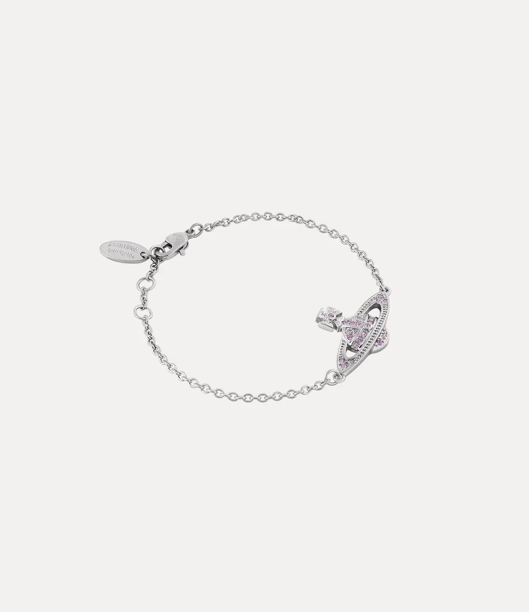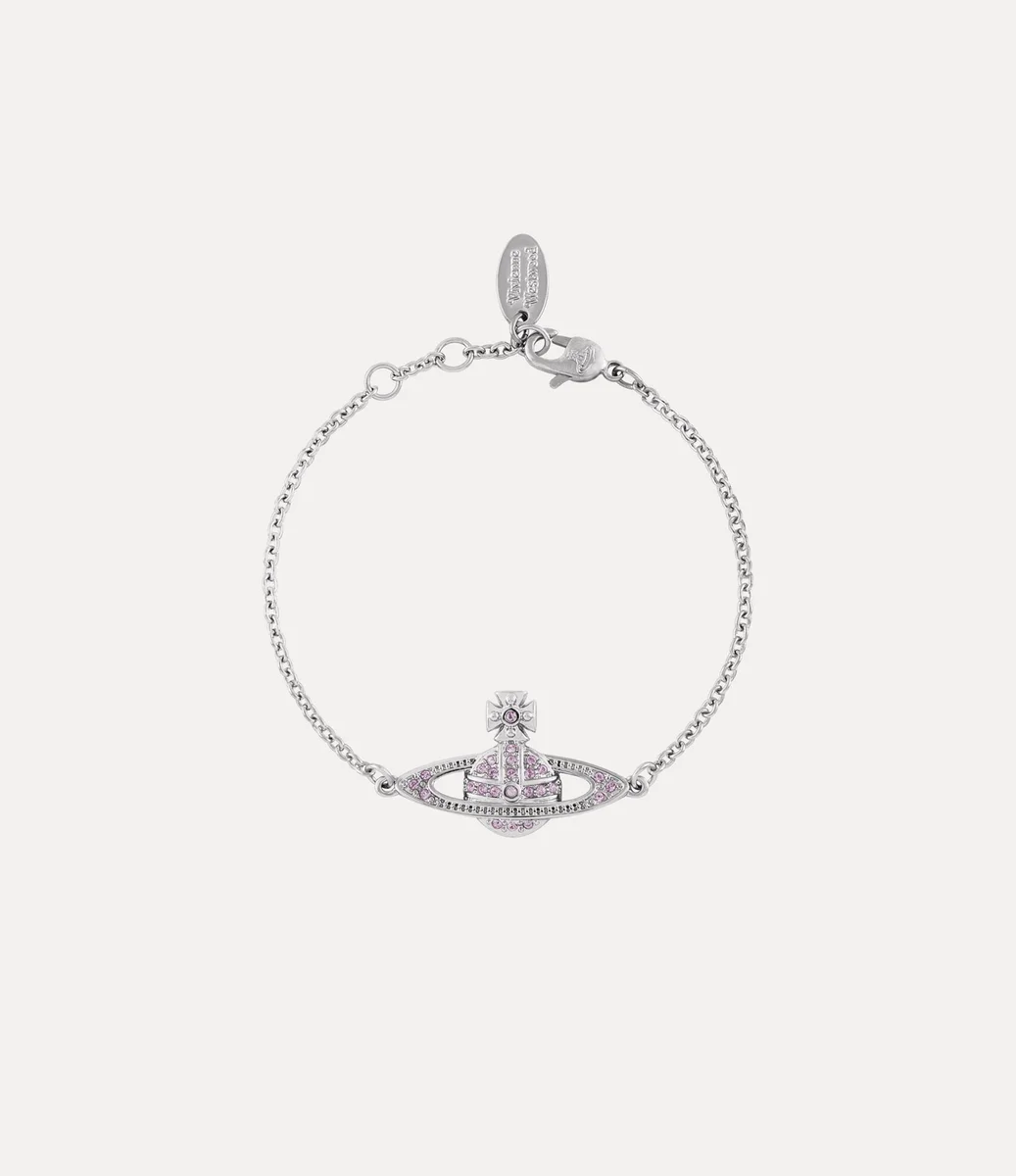 Nuestra pulsera Mini Bas Relief Chain presenta un distintivo orbe plateado en el centro, inspirado en el motivo característico de la casa. Incrustada con cristales violetas en pavé, la pieza está rematada con una etiqueta ovalada grabada con letras en el cierre de langosta seguro.