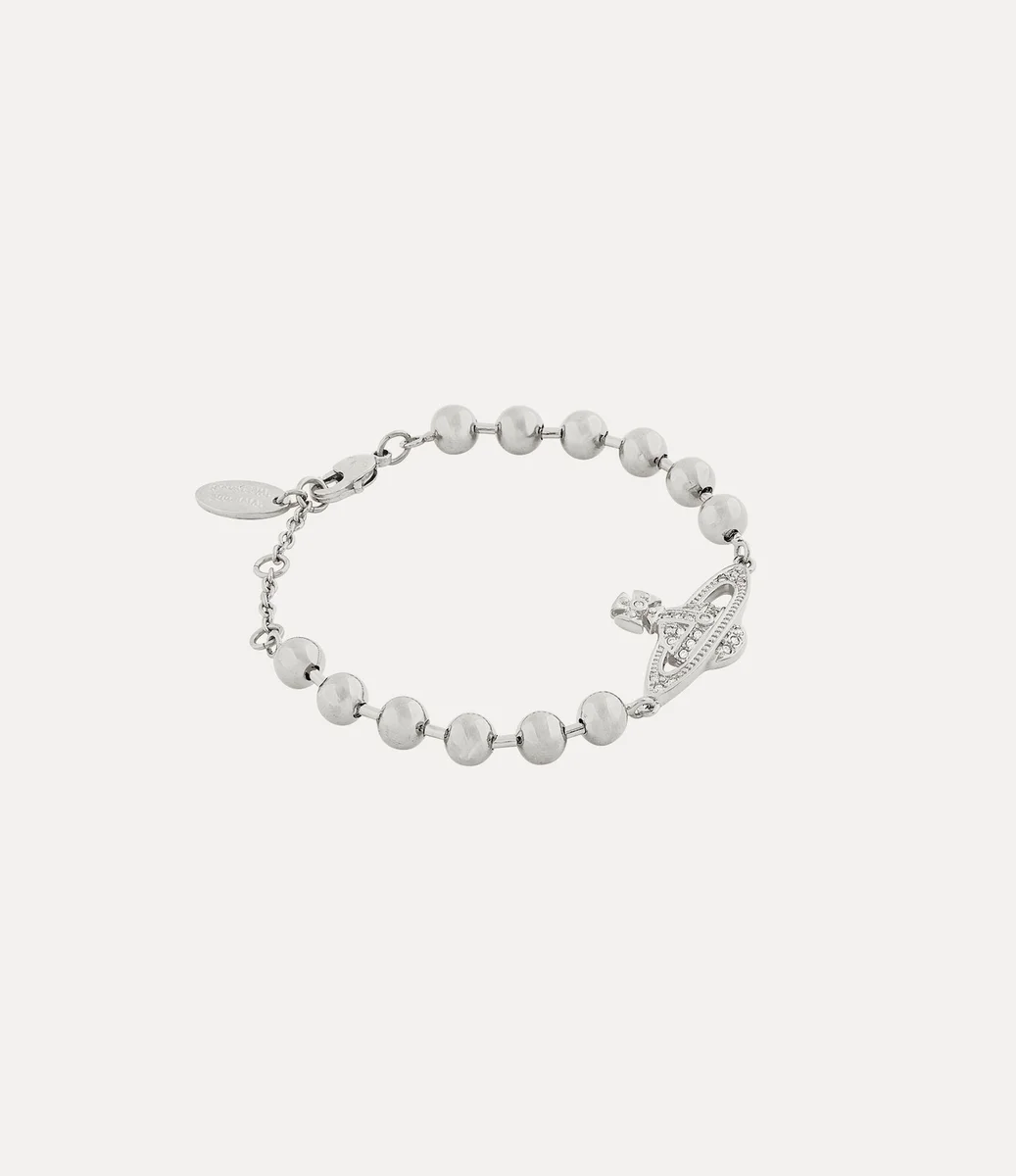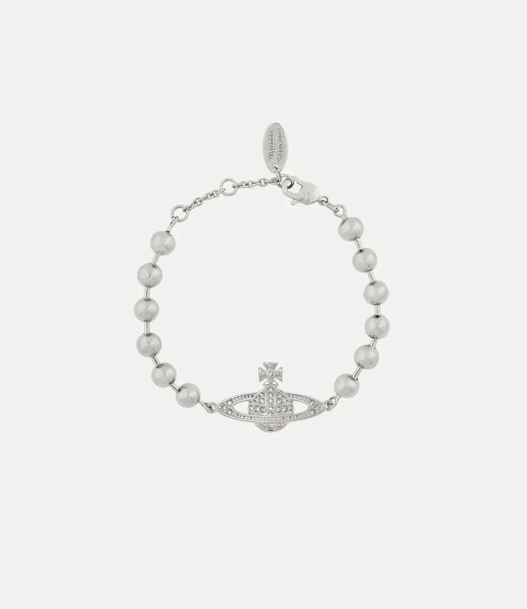 La pulsera Thames Mini Bas Relief presenta una elegante cadena de bolas con un distintivo orbe bidimensional «Bas Relief» en el centro, inspirado en el motivo en forma de orbe de nuestra casa. Incrustada con brillantes cristales tonales, la pieza recuerda la visión de Vivienne de llevar la tradición al futuro.