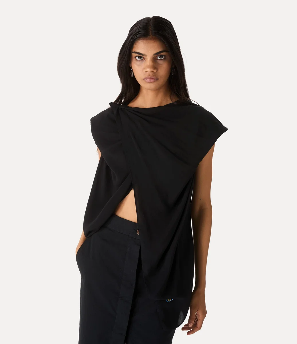 El top cruzado de viscosa de Vivienne Westwood está diseñado con una silueta alargada que cae suavemente sobre el cuerpo.