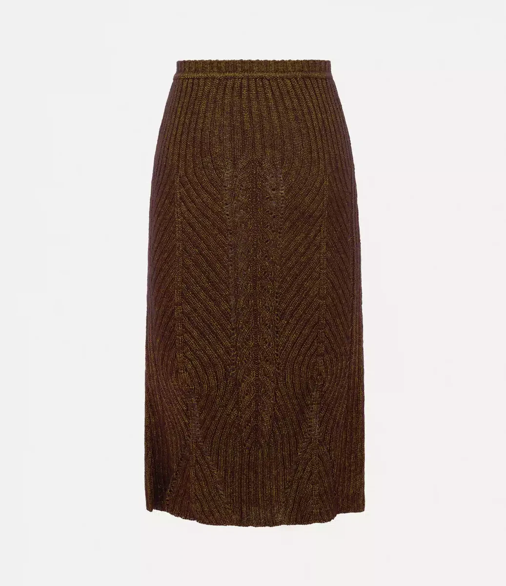 La falda Mary de Vivienne Westwood está confeccionada con una mezcla de seda y mohair y presenta una combinación de puntadas en espiga y punto elástico, con una silueta en forma de A.