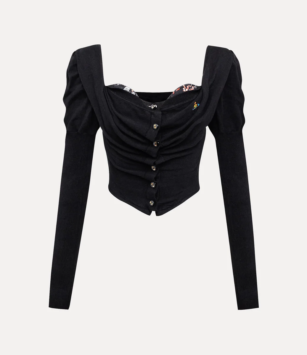 Nuestro cárdigan Bea Corset está confeccionado con una suave mezcla de algodón y cachemira y se abrocha con brillantes botones de nácar. Con un diseño contrastante estilo corsé y un elegante drapeado en el escote, la prenda está rematada con hombros intrincadamente abullonados para crear una silueta escultural.