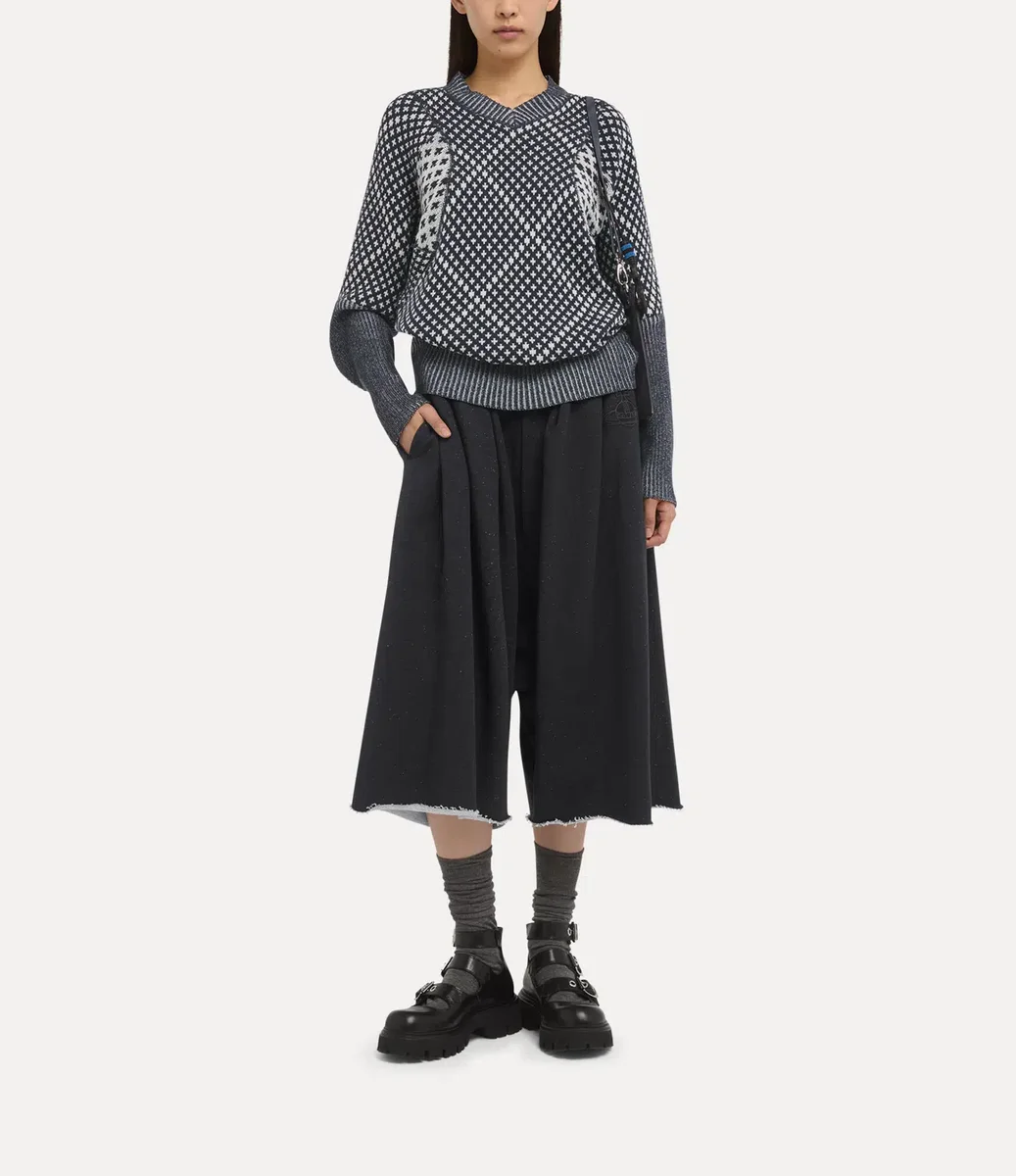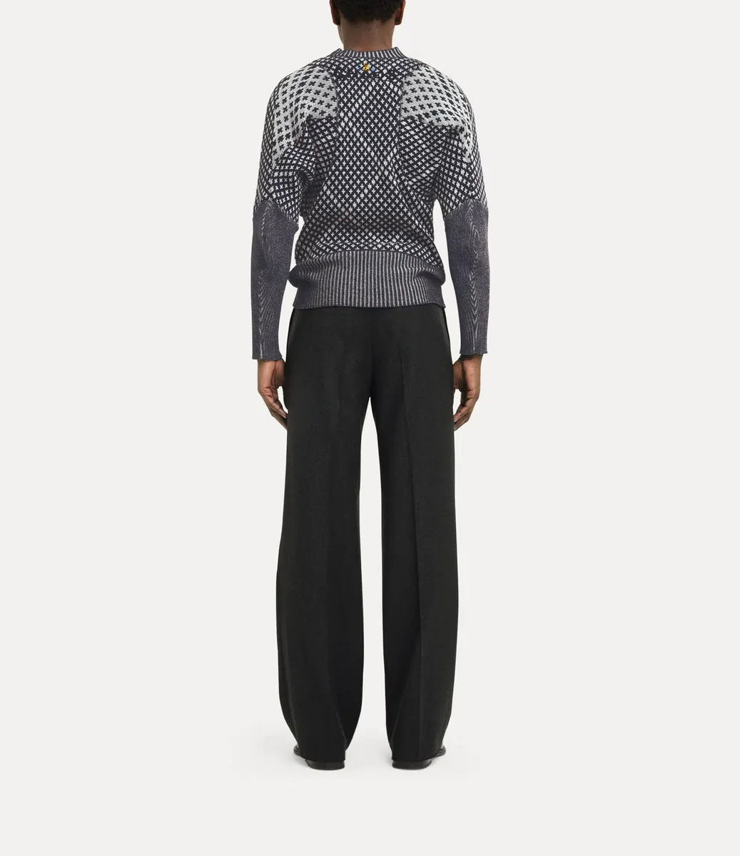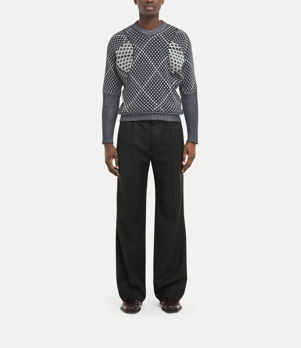 Tejido con una suave mezcla de algodón y lana, nuestro jersey Pourpoint presenta el jacquard «Crosses Argyle» de archivo, superpuesto con un motivo «Distressed Tartan». Con cuello en V acanalado y mangas largas con paneles insertados, la prenda está rematada con ribetes acanalados y un emblema «Chaos Orb» bordado en la espalda.