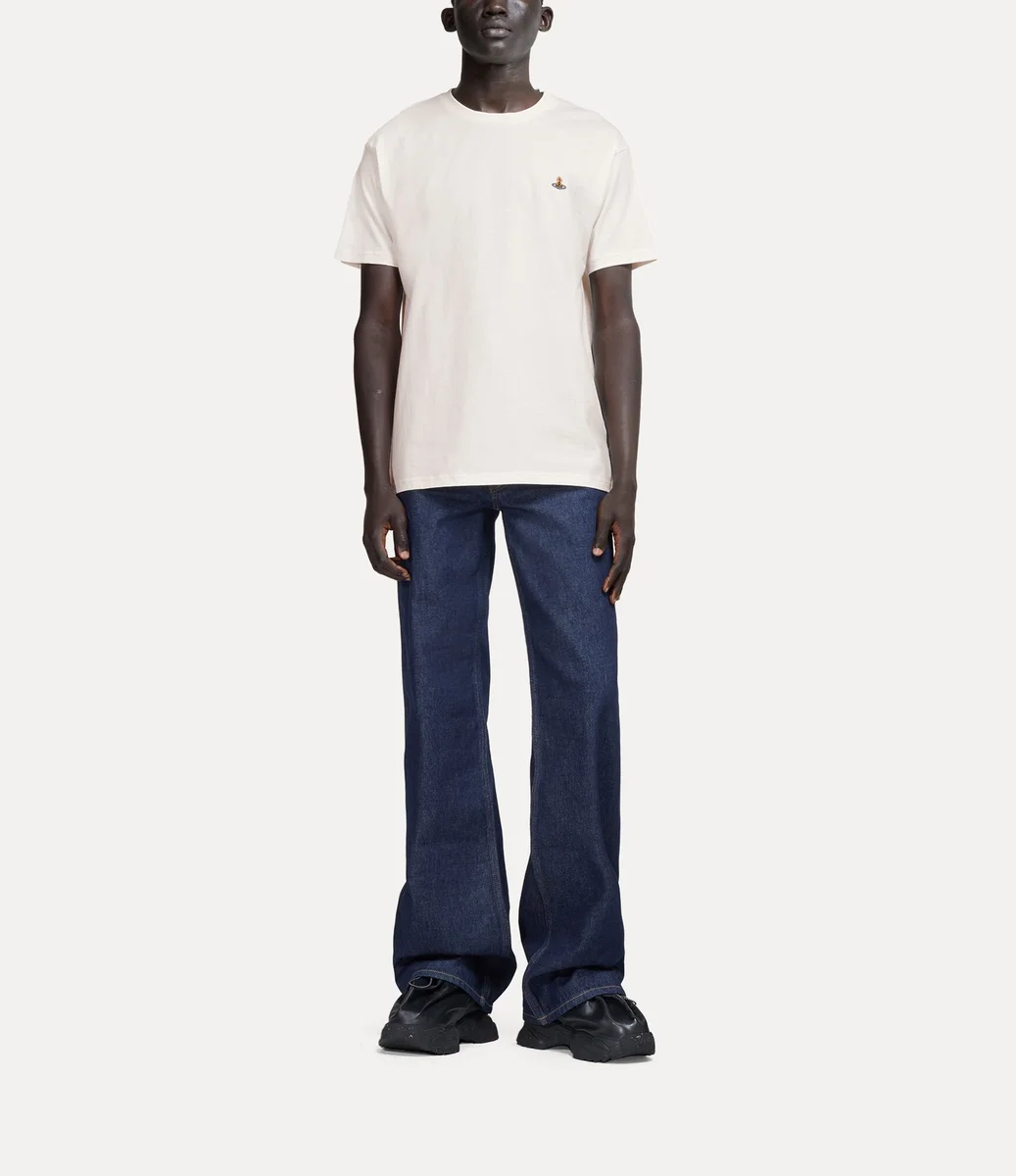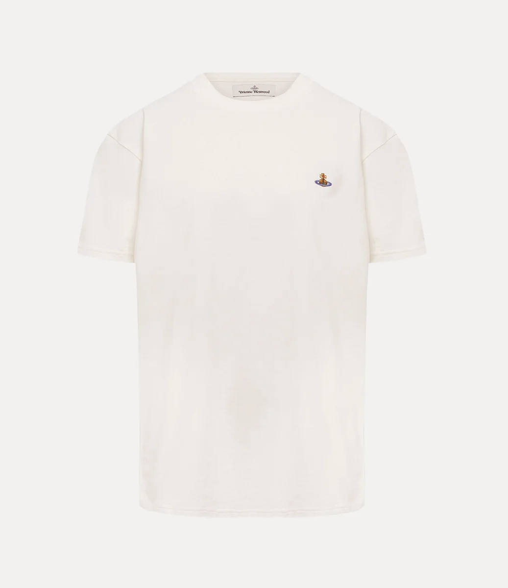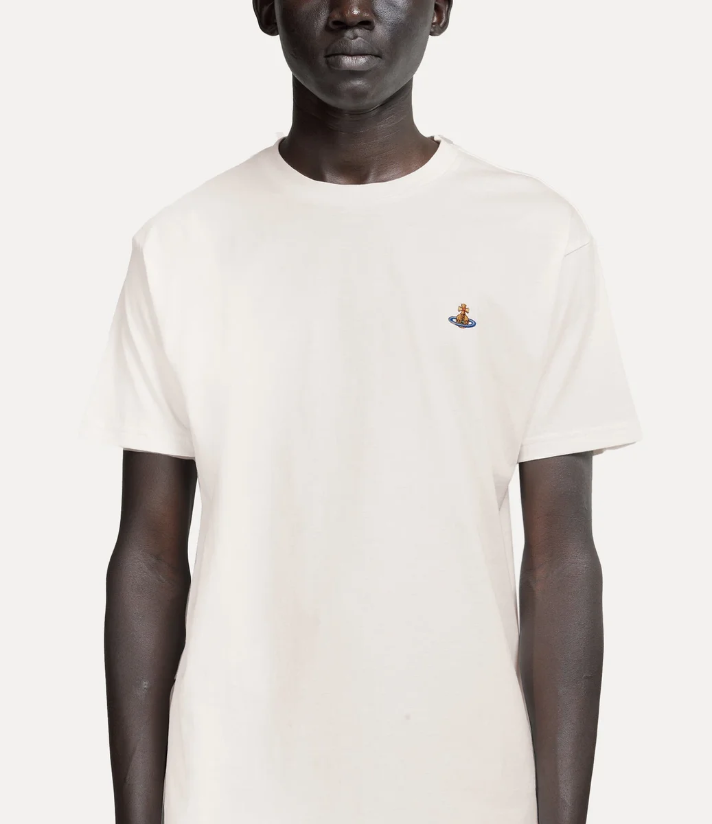 Nuestra camiseta Classic presenta un corte de algodón suave, con mangas cortas y cuello redondo. La prenda lleva un bordado multicolor en forma de esfera en el lado izquierdo del pecho, sinónimo de la visión de Vivienne de llevar la tradición al futuro.