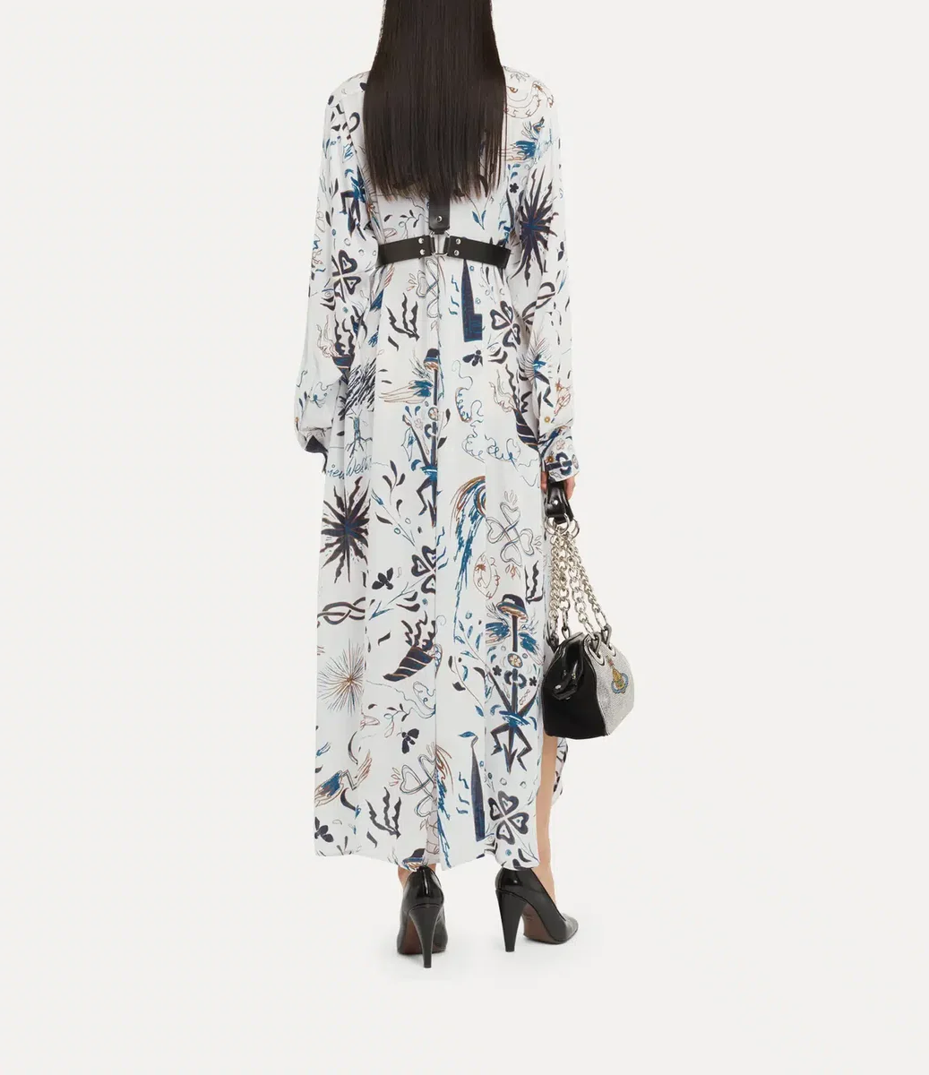 Inspirado en «El caballero risueño» de Frans Hals, que actualmente se encuentra en la Colección Wallace, el vestido camisero VW está estampado con un diseño gráfico abstracto que incorpora la iconografía característica de la casa. Con motivos de un reloj en espiral y detalles de estrellas, el estampado apareció por primera vez en la colección primavera-verano 2010 de Gold Label, «Get A Life».
