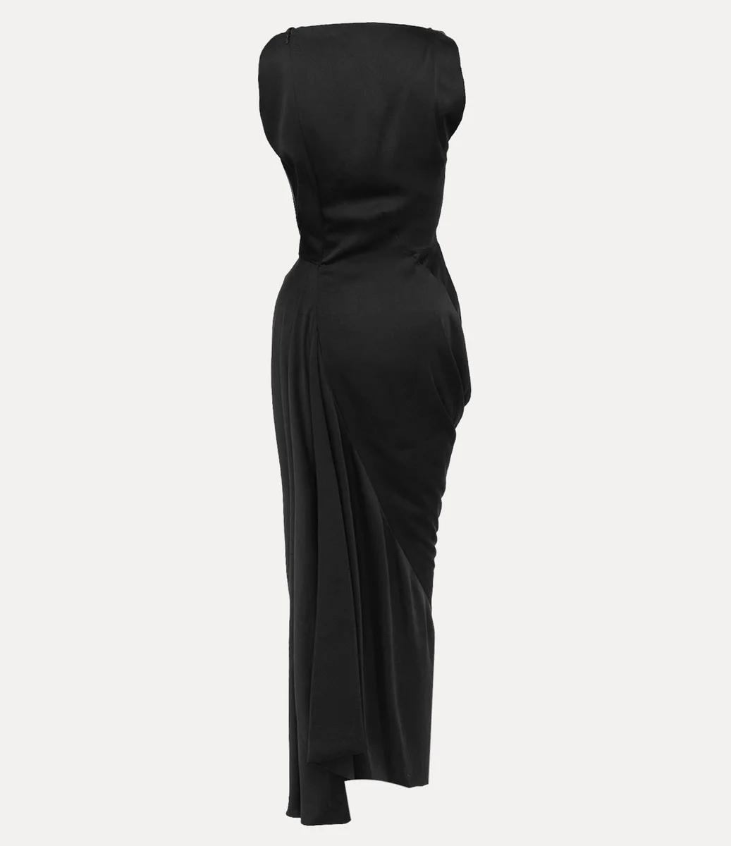 El vestido largo Fond presenta un elegante drapeado en el escote y la cintura, que cae en una silueta alargada con un dobladillo asimétrico. Con detalles de drapeado adicional en la espalda, la prenda se abrocha con una cremallera lateral oculta para un acabado suave.