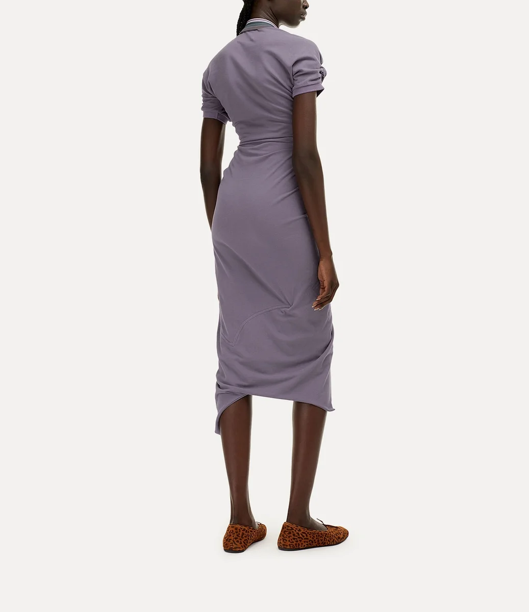 Nuestro vestido Pulling de archivo ha sido revisado esta temporada y se ofrece en un suave acabado de algodón. La prenda emplea el sistema de corte experimental original de Vivienne, denominado «Pulling», en el que la prenda se drapea y se estira para crear forma, volumen y estructura.