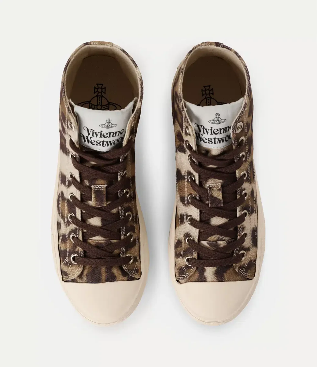 Las zapatillas altas de archivo se reinventan esta temporada en lona de algodón estampada, con un clásico diseño de cordones. Bordadas con un delicado orbe multicolor en el lateral, el estilo se completa con un suave forro de algodón.